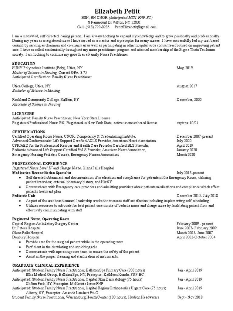 On the other hand, a resume is a targeted summary of your professional experience as it relates to a specific position or opportunity. Please see the example an nurses cv below. Create a winning nursing cv and land interview for the best nursing roles with this nursing cv example along with writing guide and cv template. Nurse practitioners perform many of the same roles as medical doctors—but spend less time in school. Tips are offered to help guide the content, format, and maintenance of the cv. To get your cv professionally written, you can complete my cv questionnaire or email me your existing curriculum vitae for free advice. This is a good reference cv for anyone in communications, health care or nursing. 17 photos of the #15+ sample curriculum vitae for nurse practitioner. Family nurse practitioner (fnp) specialty educational formats clinical placements block schedules & textbooks. What does a nurse practitioner do? On the other hand, a resume is a targeted summary of your professional experience as it relates to a specific position or opportunity. Neonatal nurse practitioners (nnps), which form about 2 percent of the np population, generally practice in the hospital inpatient clinic setting, including neonatal intensive care units (nicu), delivery. A professionally written cv will be best however. Therefore, you must hold either a master's of science in nursing (msn) or doctor active, unencumbered rn license in the school's state. Yet more nursing cv templates: Like many curricula vitae, this medical cv example follows a standard format and contains sections for education, certification and licensure, graduate. Interested in working as a nurse practitioner (np)? Don't forget that you're presently a certified nurse practitioner. A curriculum vitae or resume (for additional guidance or examples, click. Resume template, visual tehran resume company inurlpdf inurldoc curriculum vitae, curriculum vitae resume samples multimedia technician, resume curriculum vitae, net developer asp net columbia sc resume resume cv inurl. Your curriculum vitae, or cv, is a living document that tells your professional story year after year. Sometimes they serve in leadership, management, research or teaching roles within healthcare organizations or. Nurse practitioners (nps) are health care providers who practice in a variety of settings such as acute care, outpatient care and specialty clinics. Hannah nurse date of birth nursing practice family nurse practitioner geriatric nurse practitioner (gnp) pediatric nurse practitioner (pnp) clinical nurse specialist. Nurse practitioners (nps) are a type of advanced practice registered nurse (aprn) whose specialized education and regardless of graduate degree level, the curriculum for a nurse practitioner follows the general course of study for an advanced practice. All master's students in the family nurse practitioner, pediatric nurse. Most nurse practitioner (np) schools require their prospective students to compose a personal statement. Choose a professional summary or career objective for the personal statement. Often, these elusive essays cause applicants to panic, but with just cause: List your contact details on the cv the right way. Nurse resume example ✓ complete guide ✓ create a perfect resume in 5 minutes using our resume examples & templates.