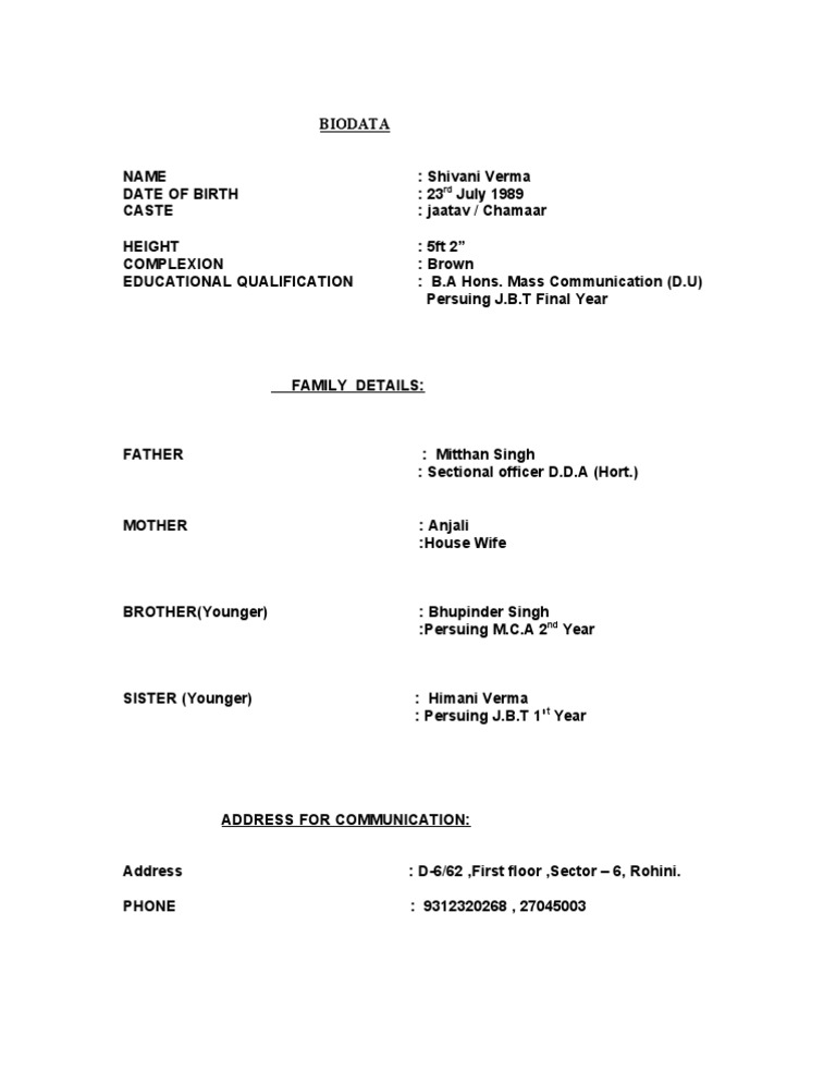 Hindi Marriage Biodata Tollywood Icon . In A Biodata, The Focus Is On Personal Particulars Like Date Of Birth, Gender, Religion, Race, Nationality, Residence, Marital.