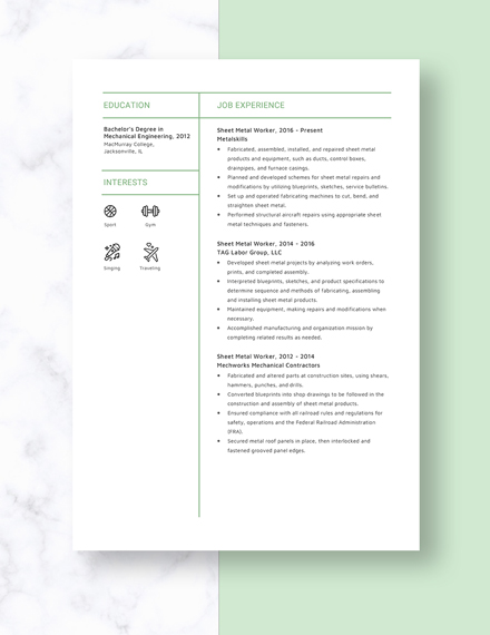 50+ Sheet Metal Worker Resume Images- Instant Download, Easily Editable & Printable.