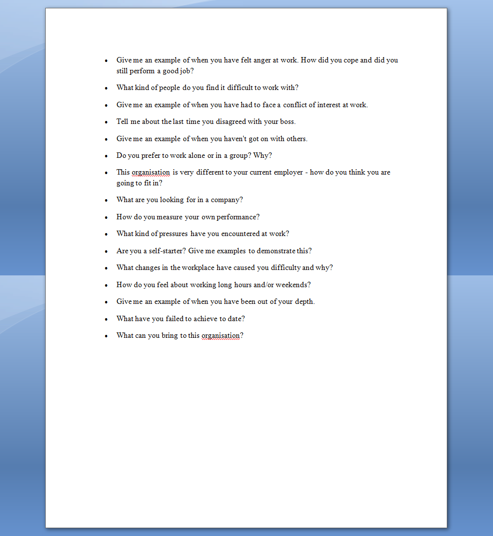 There are interview questions that are typical interview questions, questions that glassdoor.com has gone through the thousands of interview questions shared by interviewees to come up with a.